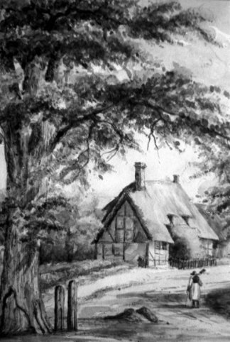| The Cross Tree in the 1880s Painted by Louisa Ashwell for Blomfield's History of Finmere, where the picture is erroneously produced as a mirror image |