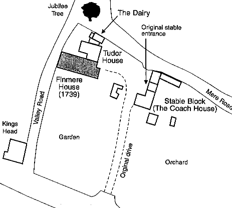 There are no surviving records to show what the building was like when John and Dorothy took up residence. It probably included the oak-framed Tudor structure referred to now as the Dairy, of which a part still stands in good condition on the south side of Mere Road, and the larger stone building facing east at right angles to it, with its inglenook fireplace, stone flags, oak beams and mullioned windows. This stone house is now known as the Tudor House and it is probable that John and Dorothy James made the first structural additions to this part of the house. The House passed to their son, Hogan, then to his aunt, Frances. On her death in 1739 it was sold.
