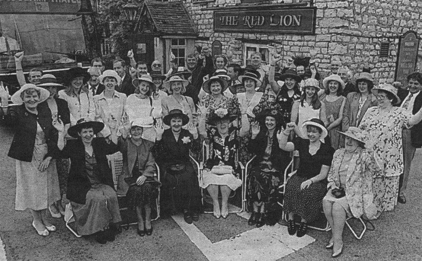| The Red Lion in the early 1980s | Villagers and friends pose before travelling to |
