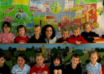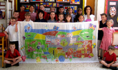 Working with artist Rose Gorman, the pupils of the school have created a collage of Finmere village in 2005.